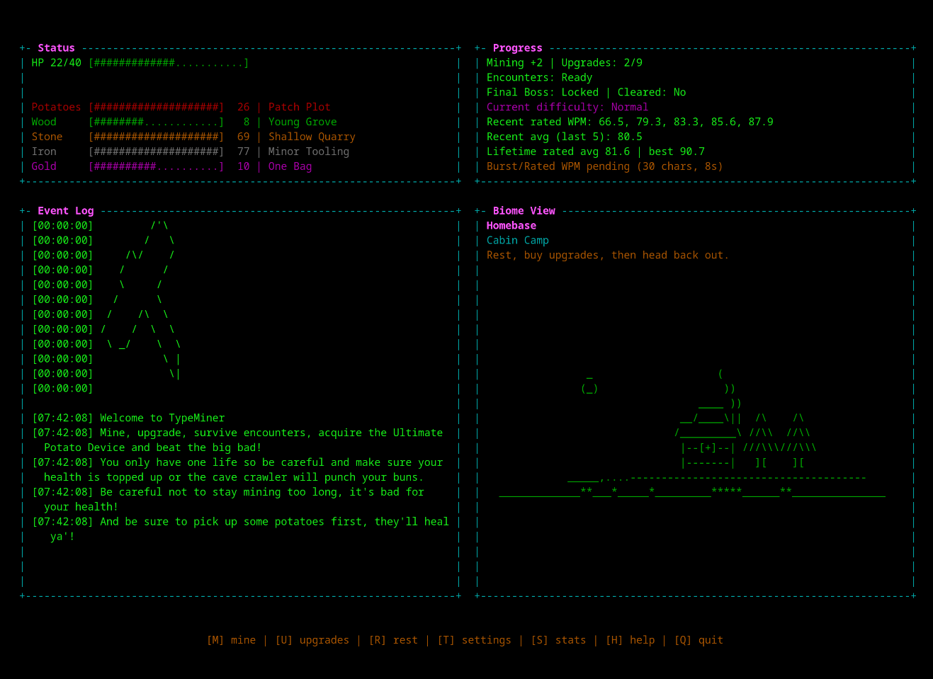 A short but replayble ASCII incremental typing game about gathering resources, getting upgrades and defeating the big Bad!